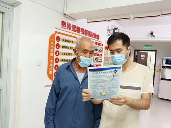工作人員面對面向老人宣傳防范詐騙知識