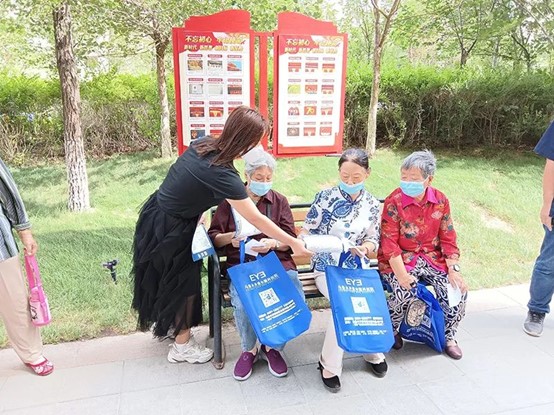 工作人員向居民們發(fā)放宣傳資料并講解養老詐騙相關(guān)知識