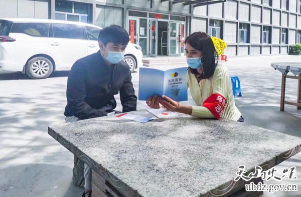 社區工作人員為居民發(fā)放非法集資宣傳資料