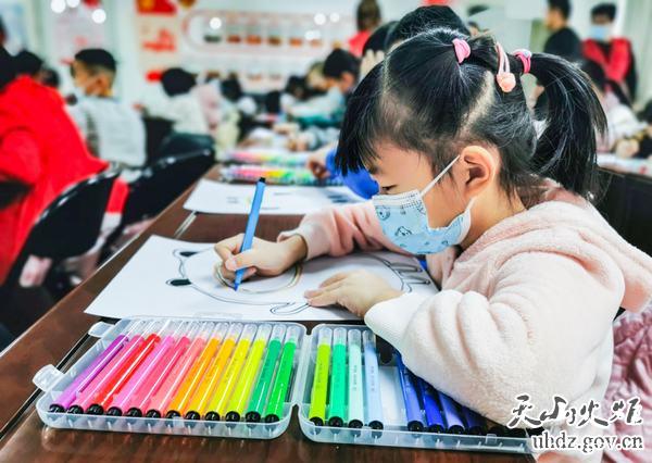 小朋友聚精會(huì )神畫(huà)“冰墩墩”