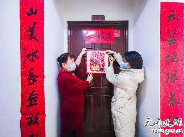 說(shuō)著(zhù),魏正豪邀請社區干部和他一起貼年畫(huà)。