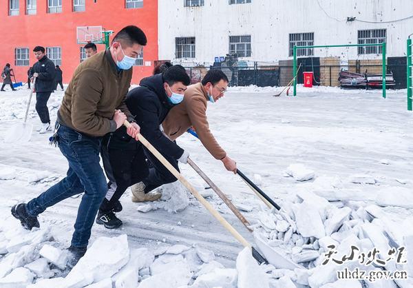 活動(dòng)當天,在工作隊隊員和村干部的組織引領(lǐng)下,轄區干部群眾、黨員志愿者、返鄉學(xué)生和環(huán)衛工們,分組深入居民巷道清除冰雪。一來(lái)到現場(chǎng),志愿者們聽(tīng)從指揮、分工合作、迅速行動(dòng),很快就掀起了一場(chǎng)鏟雪除冰“大作戰”。整個(gè)過(guò)程中,志愿者們不畏嚴寒、干勁十足,你一鍬我一鏟清除著(zhù)巷道內厚厚的冰雪。經(jīng)過(guò)志愿者們辛勤勞動(dòng),居民巷道的積雪被清除干凈,路過(guò)的居民紛紛點(diǎn)贊,志愿者們的臉上紛紛露出了會(huì )心的笑容。