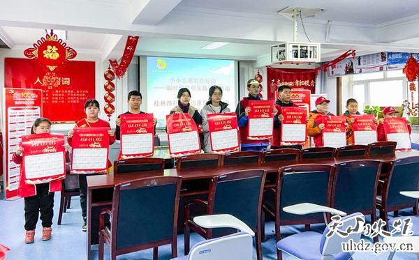 志愿者們領(lǐng)取食品安全知識宣傳掛歷
