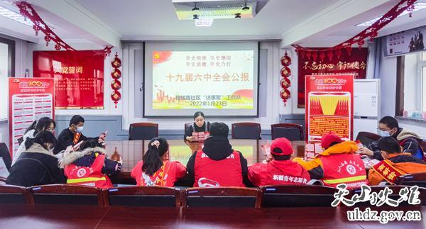 桂林路社區工作隊副隊長(cháng)徐偉麗宣講黨的十九屆六中全會(huì )精神
